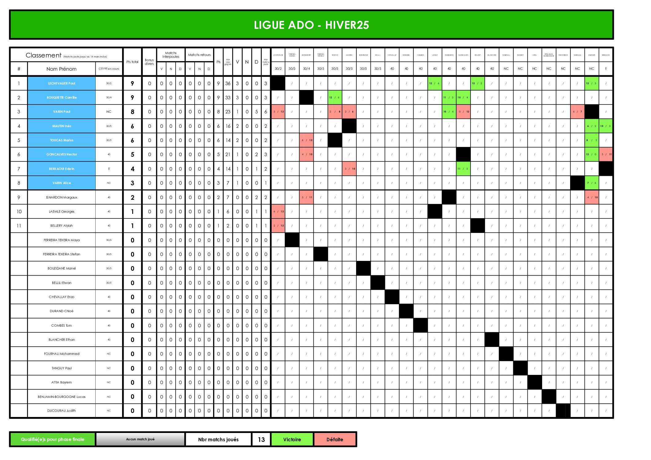 Phase de poules : 15 Septembre 2025 au 15 mai 2026